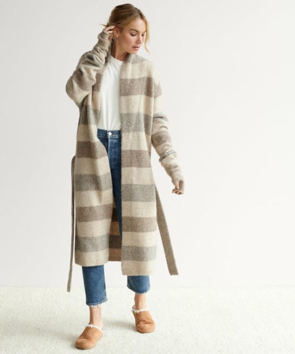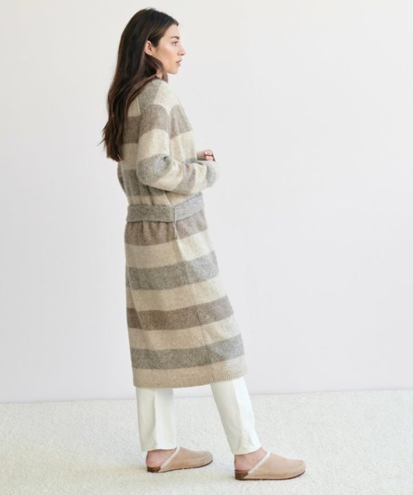 We love a sustainable color story: our Belted Sweater Coat uses natural, undyed colors, resulting in a neutral colorway that’s great for your all-season wardrobe and, most importantly, the planet. Sourced directly from Tibetan herders, our yak fiber honors the time-tested and socially responsible techniques of farmers with generations of experience. 31% yak, 31% alpaca, 22% nylon, 16% merino wool. Made in China. Shawl collar, three color stripe, and a belt. This super luxe yak knit is a bit longer than our regular Sweater Coat, providing a perfectly cozy fit. Dry clean. Fits true to size. Questions about fit? Email [email protected].