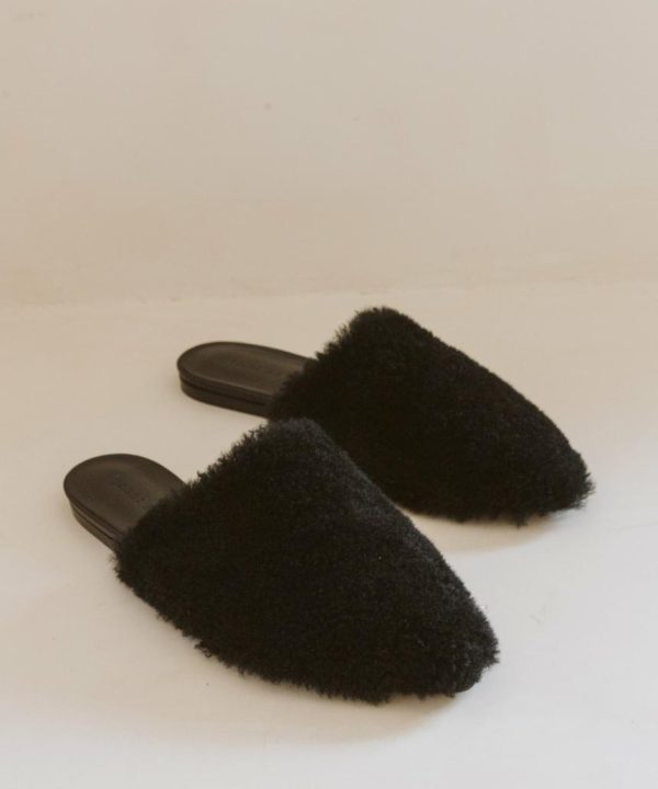 Shearling mule with lightly padded leather insole for all-day comfort and semi-pointed toe.
