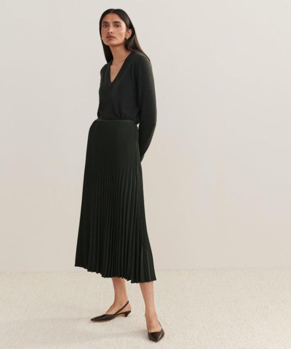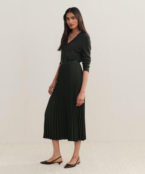 Dressed up or down with ease, this pleated matte skirt is perfect for any occasion. With an easy, ultra-flattering drape, this piece is meant for styling with varied silhouettes: pair it with a relaxed knit or turtleneck for an elevated look or a slim-fit tee for more casual styling.